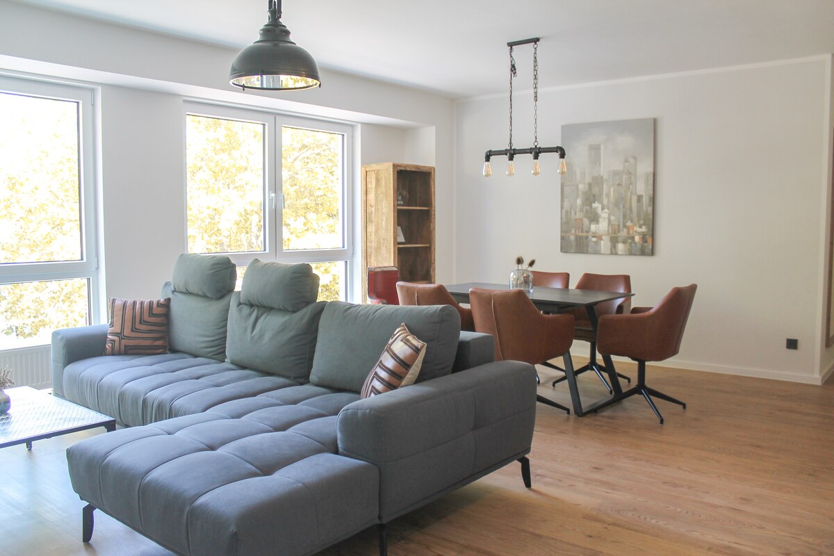 Welcome to the Cozy Quarter! This luxurious apartment offers you everything for a great short or long stay in Siegburg: -> Two bedrooms with comfortable double beds -> Permanent sofa bed for 5th & 6th guest -> Smart TV with Netflix, Disney+, RTL+ Magenta TV and ambilight. -> Phillips Hue ambient lighting in living area & bedroom. -> Nespresso coffee -> Kitchen -> Washing machine & dryer -> parking space -> walking distance to bus stop, supermarket, restaurant & co.