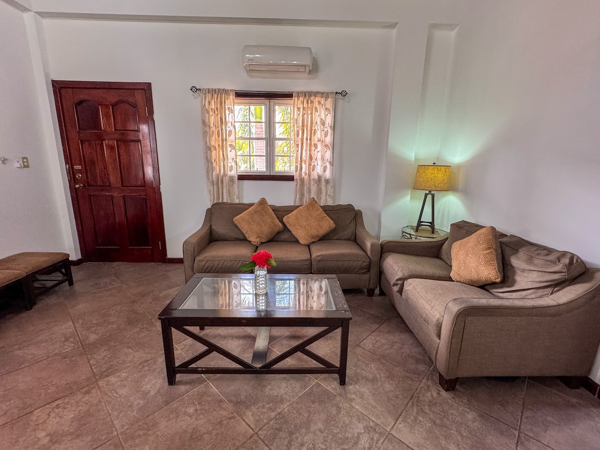 Immerse yourself in the spirited local culture of Hopkins fishingVillage at spacious Mana Garden-level one-bedroom flat! Soak up sun & sea on the Caribbean beach just 3 lots away then relax outside in our fenced tropical garden with palapa & hammock! Open concept living/dining/full equipped kitchen. A/C & WiFi throughout. Bedroom with queen bed. Host on site. Enjoy what Hopkins has to offer: restaurants/bars, shops, Garifuna music/drumming/cooking, reef/jungle tours & more are a short walk away!