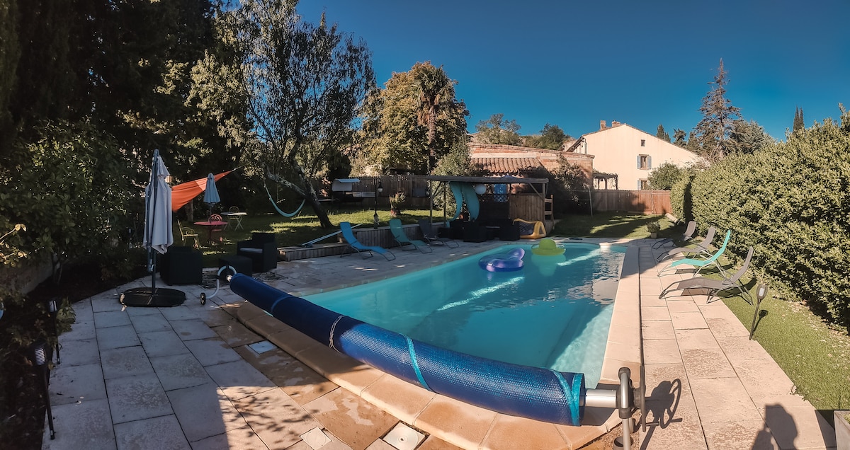 Unique: at the foot of the ramparts, a large shaded terrace and a Jacuzzi. Tastefully and lovingly renovated house. Friends and families wanting to discover and enjoy this stunning view of the medieval city. A - 10 min walk from the Bastide: shops, markets and restaurants where you can taste our regional products. The city is accessible from the house for a walk, to see a knight show or to eat. Walks, jogging… by the canal or the Aude.