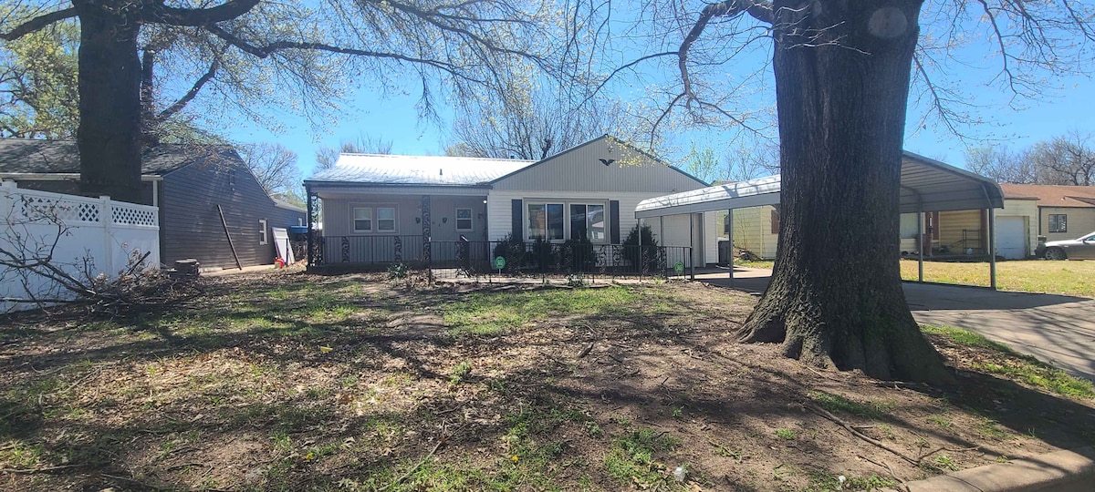 Escape to our charming 2-bedroom, 1-bath home just minutes from historic downtown Wichita! Perfect for a relaxing getaway, our pet-friendly space features a large fenced yard, grill, and fun yard games like cornhole. Inside, enjoy a fully equipped kitchen, washer/dryer, and extra sleeping options with a cot and foldable couch. Whether you’re here to explore or unwind, we’ve got everything you need. Book your stay today and experience the best of Wichita!