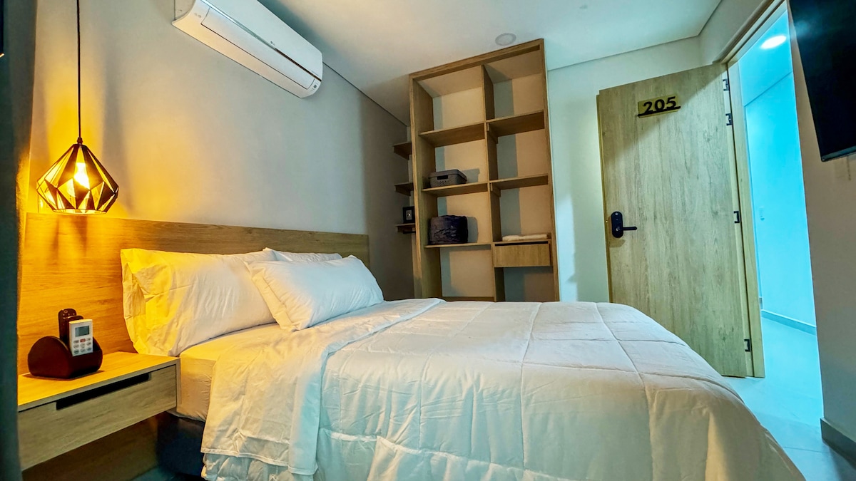 This place is not to be missed. We have 1 bedroom 1 bathroom with a jacuzzi. A fully equipped open kitchen concept. High Ceilings. modern light decor and a 55'' HD TV. This hotel is perfectly located within 2 blocks of Parque Lleras. Within a few mins walk from the best Restaurants in Medellin like Carmen, El Cielo and Hanami. If you want to be in the heart of the action where the locals hang out this is the place to be. Everything you need is at a few steps reach.