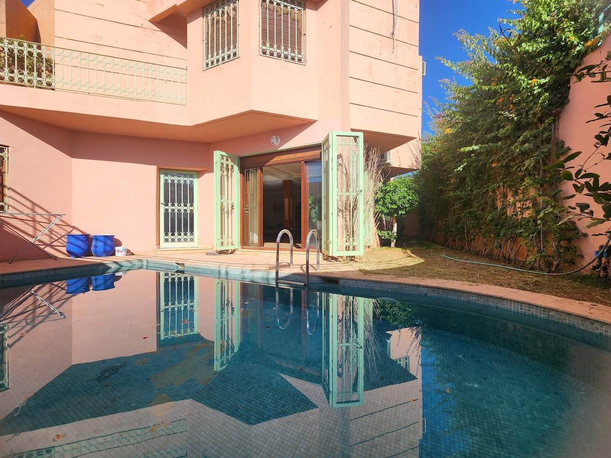 Welcome to our spacious villa in Marrakech, ideal for your family or friends vacation. Enjoy 3 comfortable bedrooms, a large bright living room and a private garden. Relax in the private pool after a day discovering Marrakech. The equipped kitchen and outdoor space will allow you to share good meals. Private parking available and easy access to the main attractions of Marrakech.