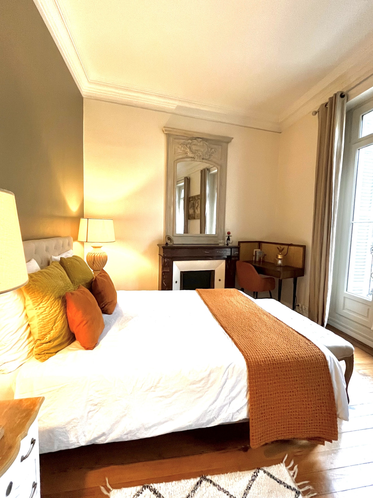Charming flat typical of Bordeaux. This flat of 50 m2, located in Cours d'Albret, in a small bourgeois building is particularly comfortable, with an elegant decoration . Flat on a driving avenue for cars and buses. Windows are with double glazing. It is well equipped (wifi, Tv, queen size bed ....) and will allow you a comfortable stay. A few steps from the Palace of Justice, it is in the heart of the city center. Tram A and B , Bus G at : 50m. Supermarket, bakeries and restos nearby .