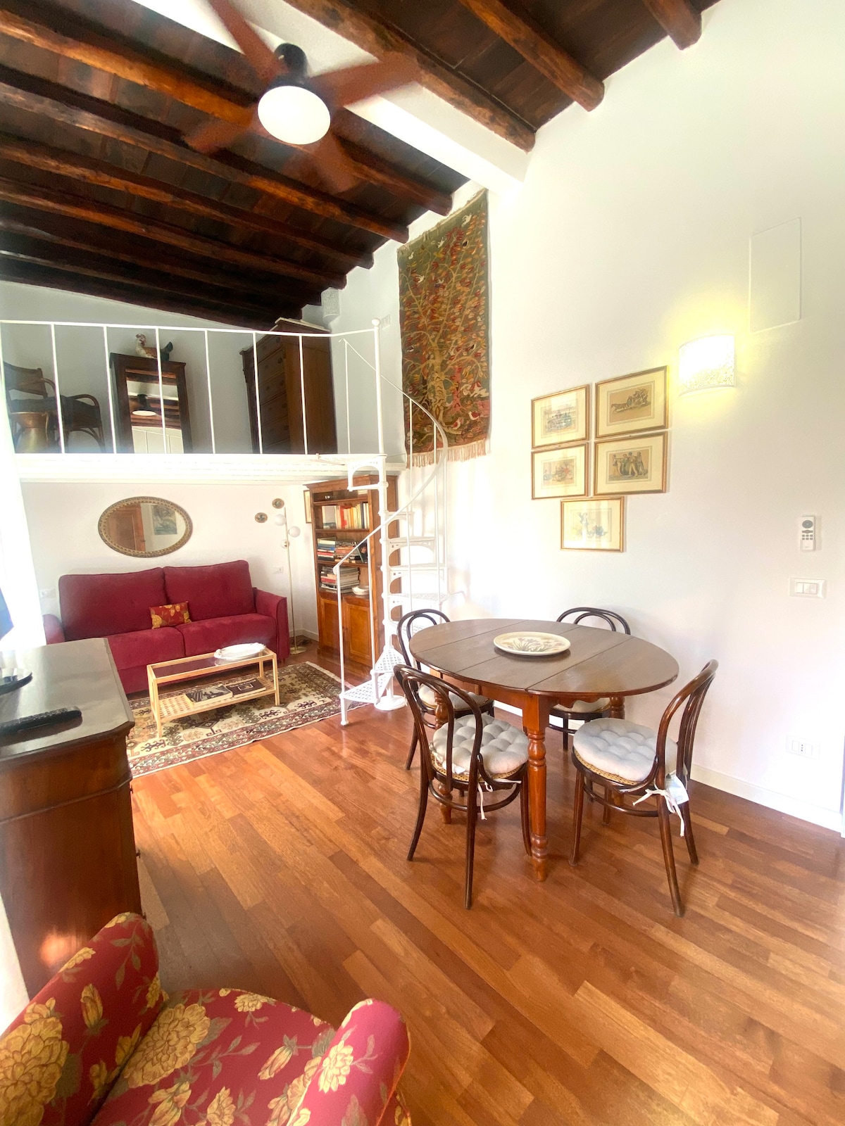 Welcome to a truly authentic Roman apartment, lovingly renovated with attention to family details. Ideal also in winter, well-heated spaces, comfort and tranquillity. Located just steps from Campo de’ Fiori, in a historic yet quiet area, it’s the perfect place for those who want to enjoy the beauty of the city center with the comfort of home. The exposed wooden beams, the peaceful view over an inner courtyard, and the traditional atmosphere will let you experience Rome like a true local.