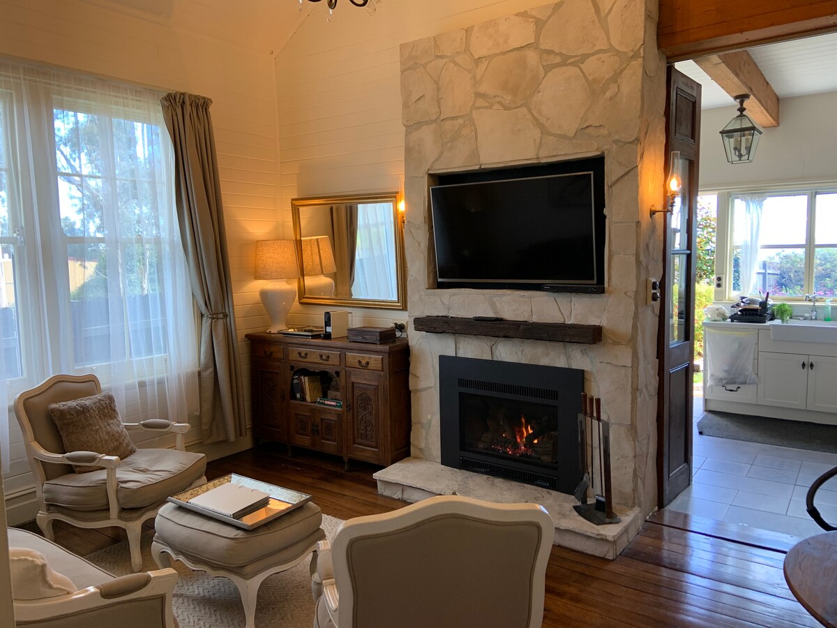 In 1908, Melbourne House was built on the cliffs above Megalong valley, sharing the same world class views as the iconic Hydro Majestic Hotel 200m away. The heritage cottage is located in the upper Blue Mountains in the quiet town of Medlow Bath, a 5min drive from Katooomba and Blackheath, Wentworth Falls & Leura. The studio features a realistic natural gas log fireplace with sandstone chimneys and tallowwood floors, woodfire oven, high timber lined ceilings and walls, & heritage gardens.