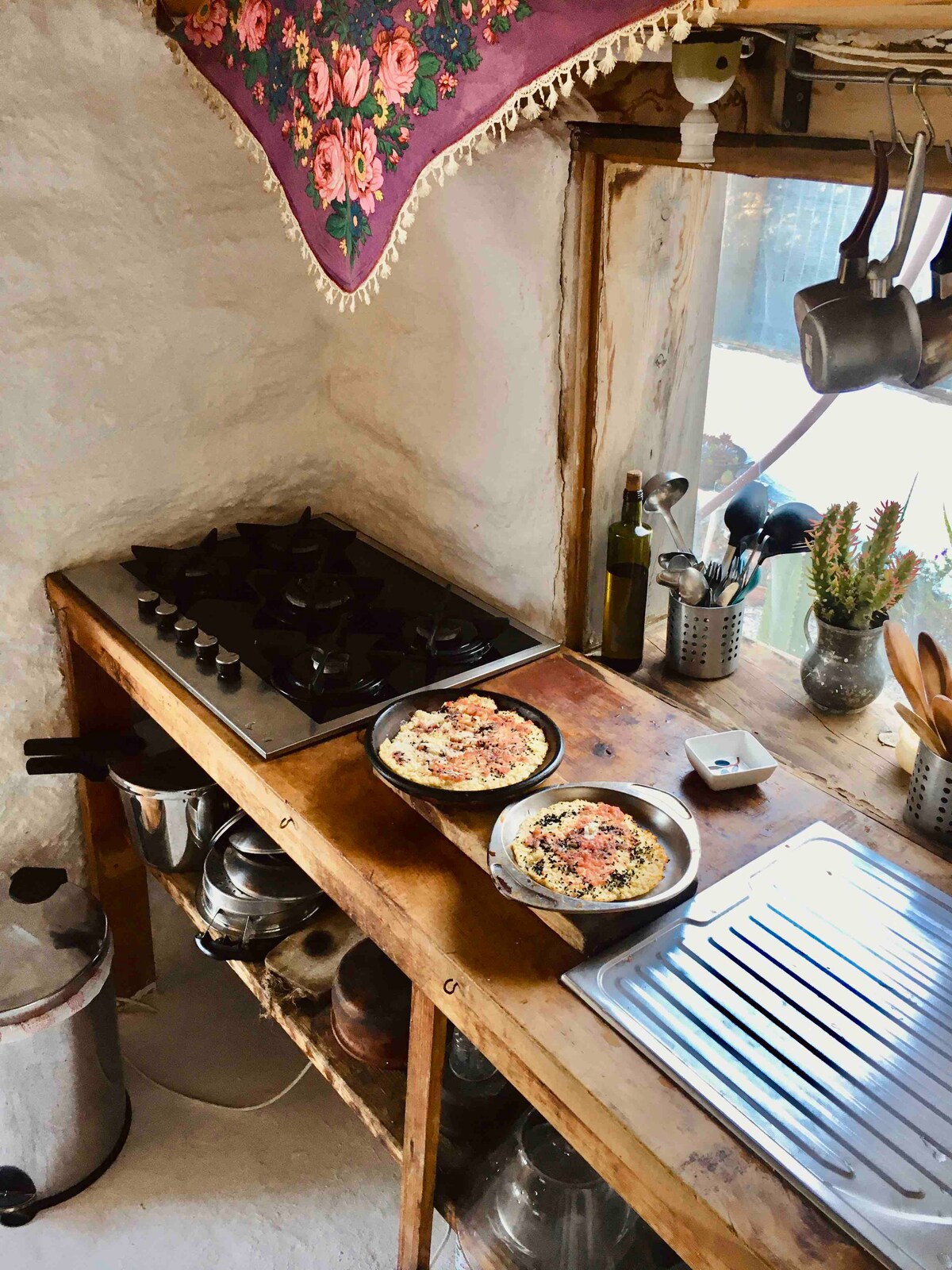 Hi, first of all these are cob houses all made by clay in the traditional stone masonery methods of ancient mediterranean. We're leading a self sustainable life 'as much as we can' so our electricity is coming from solar energy panels which are enough to run a small fridge, laptops, lights and phone charges. Wood fire water heater in the bathroom. We wanted to be far from the crowd so we re a bit not so easy to get at. So its best if you have a 4x4 or u can walk a path uphill for 15 minutes.