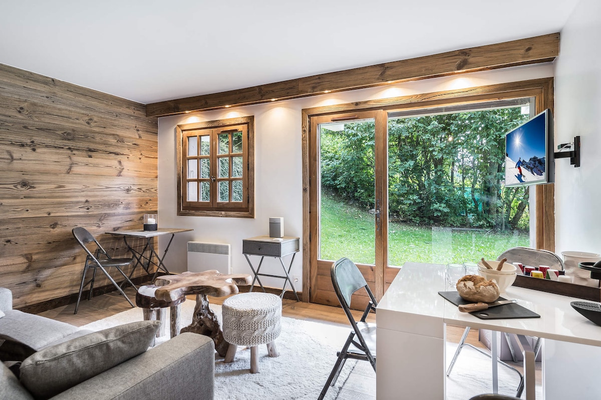 Located in the heart of the prestigious village of Megève, in the very residential, quiet and renowned area of Mont D'Arbois, this luxurious ground floor apartment with terrace in an intimate chalet is an ideal base for skiing, and winter hiking as well as all summer sports activities (golf, cycling, walks). Ideal for 4 to 5 people with its 2 en-suite bedrooms. Its spacious living room, stove and terrace, contemporary furniture and design.