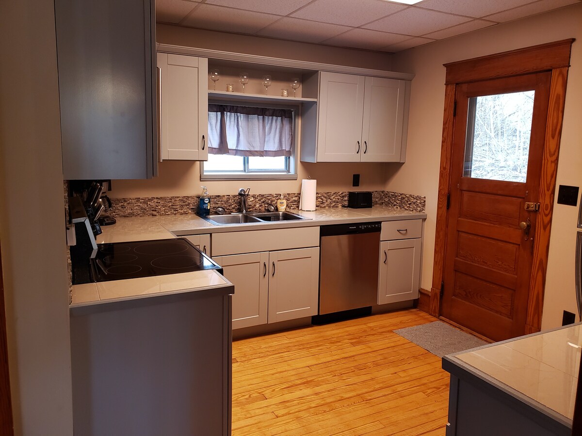 Tucked Inn is a totally remodeled house in a quiet country setting. The pond offers swimming, a dock, pedal boat and fishing. The sunroom has a sauna for 2. The owners are next door and have a 500 acre family farm with beef cattle and a maple syrup operation. Sit on the front porch or grill on the back porch and enjoy the propane fire ring. Kids can run and play. Hunting available a mile away on a State Game Lands 219. Enjoy hiking in the large woods just out your back door.