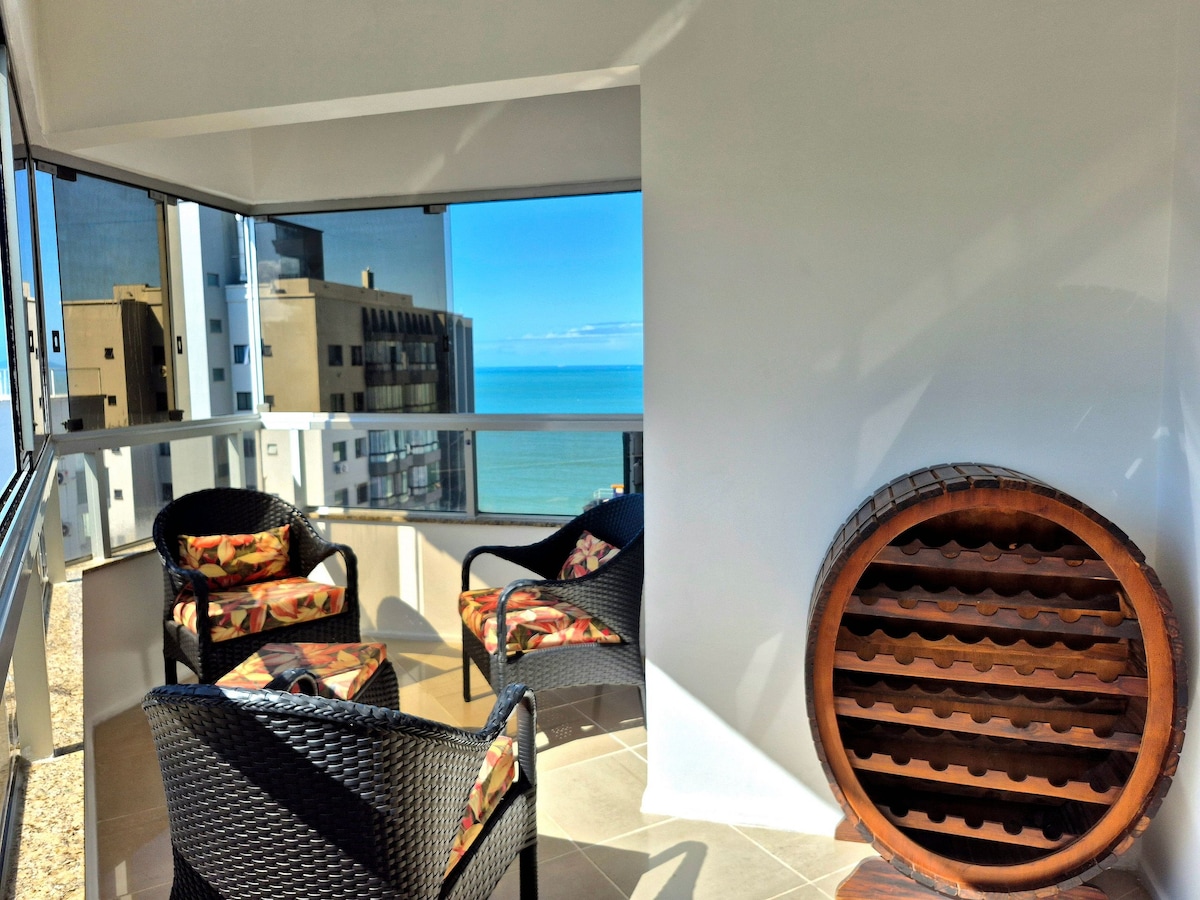 Rent our beautiful 3-bedroom apartment on Avenida Atlântica facing the sea, on the Central beach of Balneário Camboriú. The space is fully equipped and decorated so that you and your family feel at home, accommodating up to 8 people. It has 3 air-conditioned bedrooms and features an excellent living room with TV, a complete kitchen with all utensils and appliances. Wi-Fi is available throughout the property.