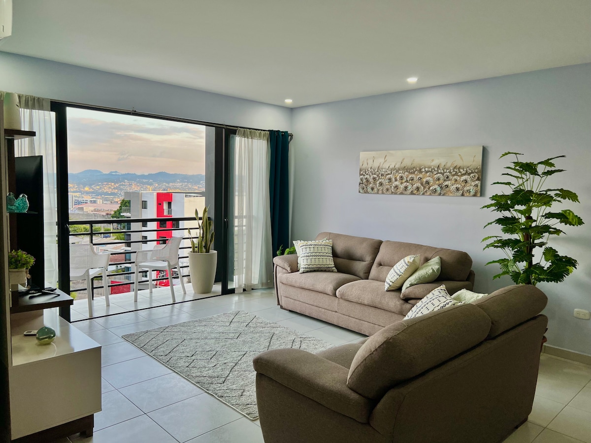 Cozy, spacious and modern apartment in a central area, with a stunning view of the city and the San Salvador volcano. It is very well equipped with everything you need for a pleasant stay. With fast Wifi, TV, hot water, air conditioning in rooms and living, kitchen with everything you need. Balcony with great city view Perfect for families Very well located, less than 5 minutes from the largest shopping centers, restaurants and bars. Safe and exclusive area.