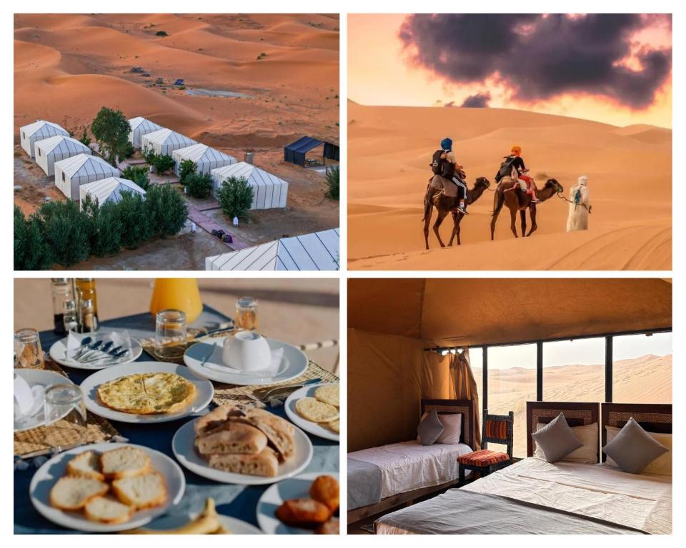 Welcome to Bohem Camp – Your Sahara Escape Experience the magic of the Merzouga dunes at Bohem Camp. Stay in cozy Berber tents with private bathrooms, enjoy camel treks, sandboarding, and stunning sunsets. Savor traditional Moroccan cuisine under the stars and unwind by the campfire with music and storytelling. Whether you're seeking adventure or tranquility, Bohem Camp offers an unforgettable blend of comfort and culture. Book your desert getaway now!