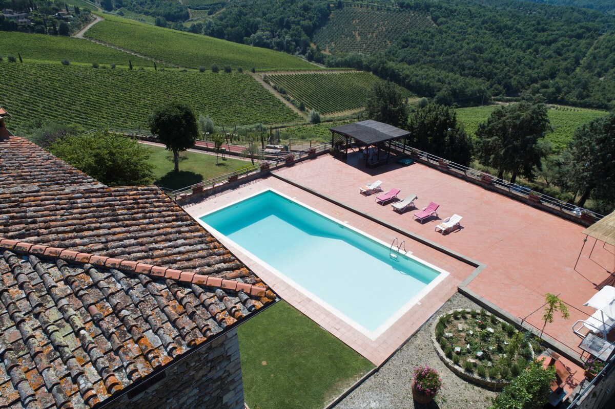 The estate finely restored in 2016 is accessorized with all the confort you need for an holiday dedicated to the relax or to excursions The Breathtaking view on the Chianti Classico's vineyards give to the estate a unique feature perfect for a romantic holiday, small group of friend or a little family. The estate is provided of external Jacuzzi, private garden and we can arrange for you bike or hike excursions. The Village of Gaiole in Chianti is just 5 minutes away by car.