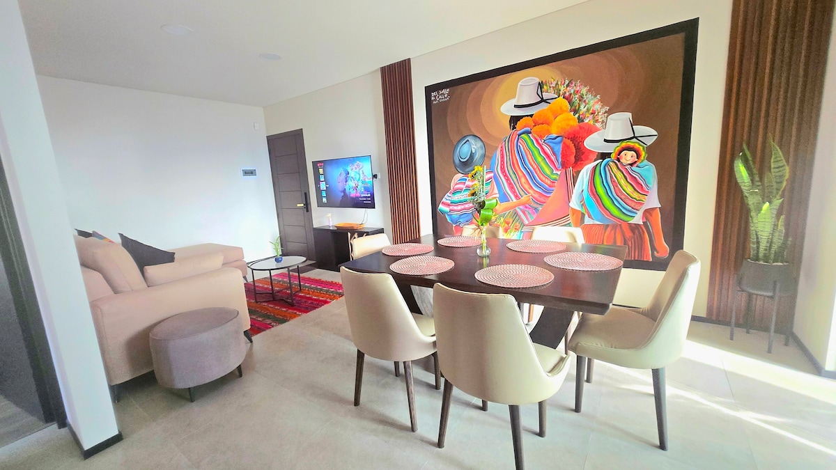 Enjoy a stylish experience at this centrally-located place. Our apartment is beautifully decorated with costume handmade furniture made in Bolivia. Located in the best area in Cochabamba surrounded by parks and a stunning view of the mountains and the Cristo. Walking distances to coffee shop, wellness yoga center, saturday local fresh markets, restaurants, public transportation, university, and so much more.