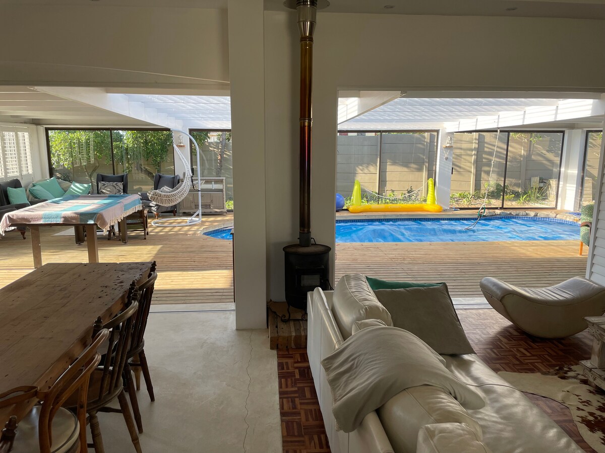 Welcome to our family-friendly, stylish home centrally located on the gorgeous Melkbosstrand beach. Stepping into our cozy abode, you'll be greeted by breathtaking panoramic views of the endless ocean, pristine white sand, and the serene shoreline. This exclusive retreat is the perfect blend of modern design, warm hospitality, and easy access The open-plan living area is designed to bring families and friends together, with a generous living room featuring plush sofas & a large flat-screen TV.