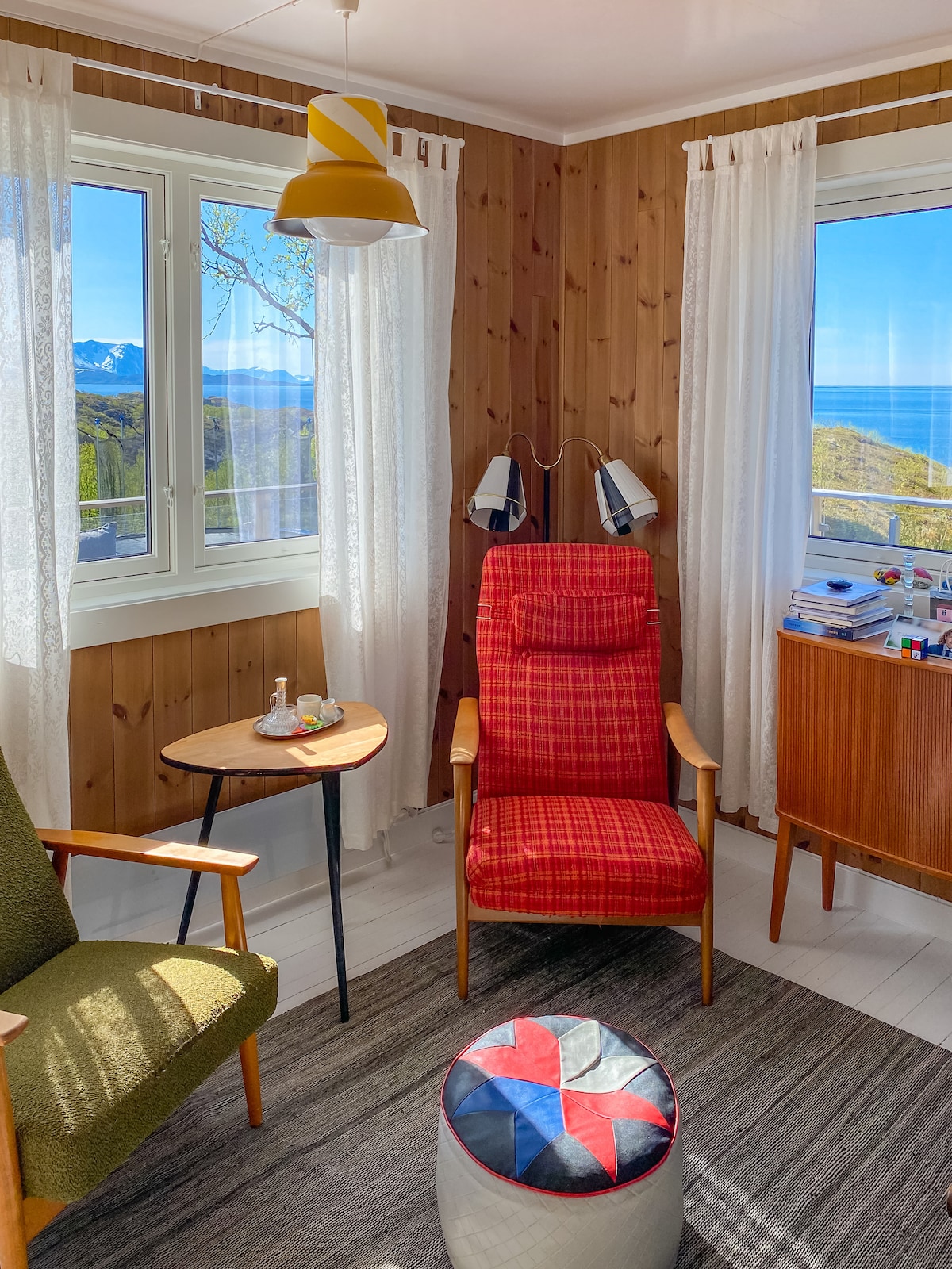 Rural location, 50 m from the sea/pier. Festive, retro style. Well equipped, bathroom with underfloor heating. 2 beds in the loft (steep stairs), 1 sofa bed on the first floor. Bed linen/towels included 45 min drive from Harstad/airport. Minimarket/gas station nearby. Location between Tromsø and Lofoten Rich wildlife in the area, opportunities to see moose, otters, white-tailed eagles, whales, reindeer, etc. Pier can be used, possibility of using kayaks (weather permitting). No smoking/parties
