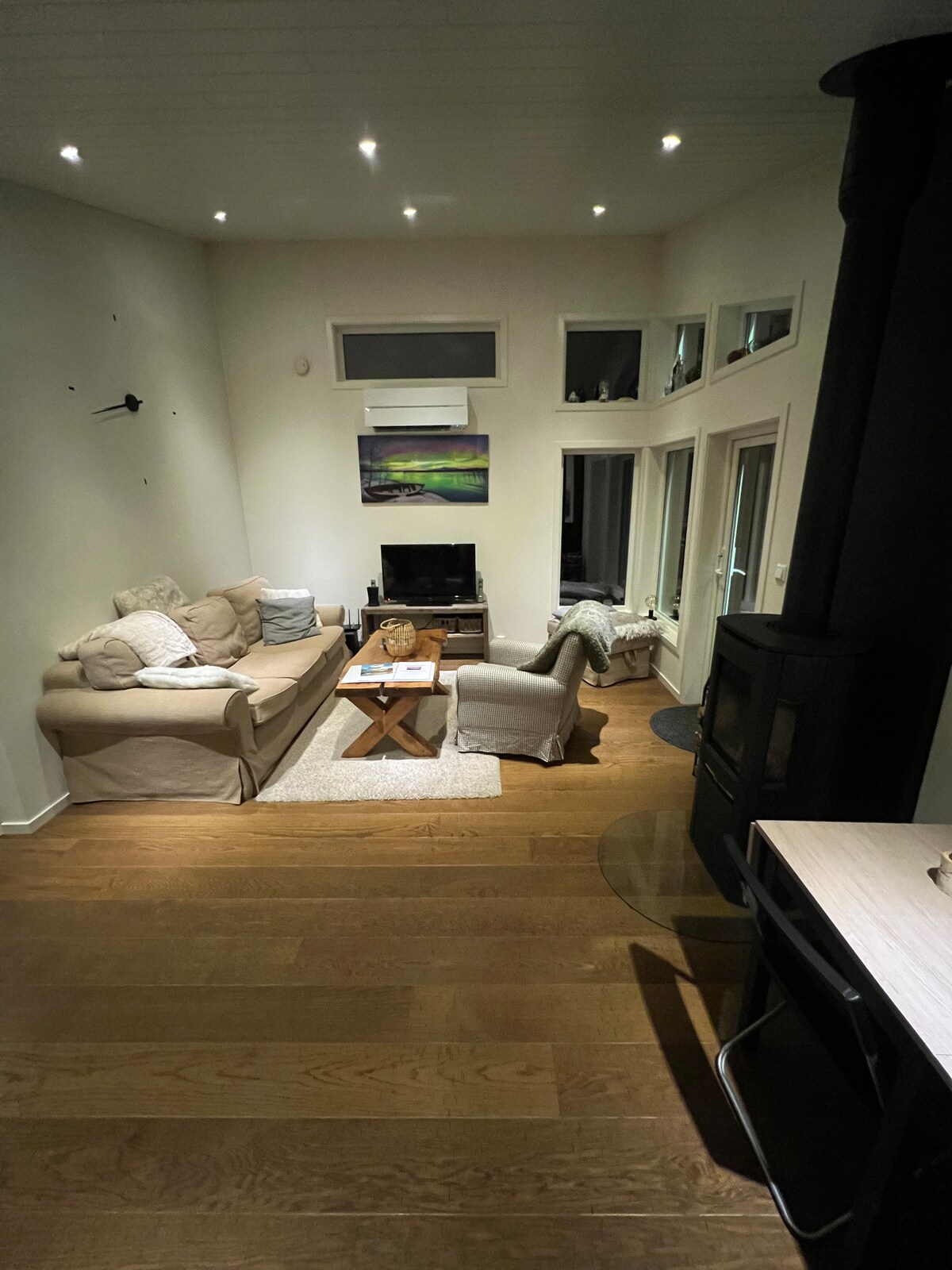 Newly built vintage style apartment in a former barn. The place is beautifully situated by the sea and mountains. Popular fishing spot for trout and salmon. Several kilometers of forest roads for walking. In winter, we have created a suitable fire pit to enjoy the Northern Lights that often beautifully dances across the sky.