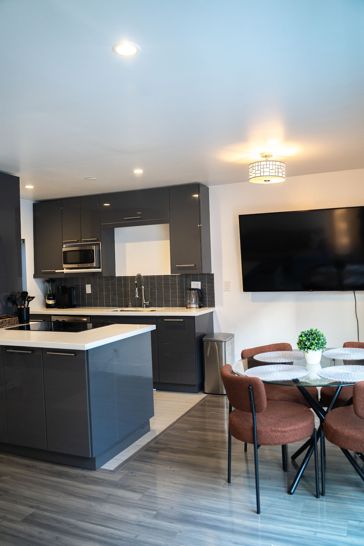 New, MODERN, ELEGANT & serene HOLLYWOOD complex in the city. HIGH-END condominium by the famous SUNSET STRIP & walking distance everything! PRIME Location! BEAUTIFULLY designed & decorated. Shower/Tub; large smart TV with free Netflix/Hulu; fully equipped brand new kitchen with dishwasher; very cute dining & work area; brand new queen size MEMORY FOAM BED & stylish, futon sofa! You‘ll absolutely love this place :-)