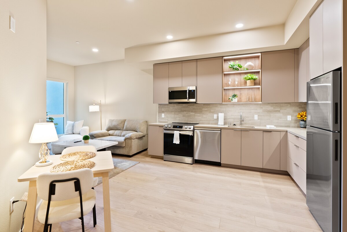 New, MODERN, ELEGANT & serene HOLLYWOOD complex in the city. HIGH-END condominium by the famous SUNSET STRIP & walking distance everything! PRIME Location! BEAUTIFULLY designed & decorated. Shower/Tub; large smart TV with free Netflix/Hulu; fully equipped brand new kitchen with dishwasher; very cute dining & work area; brand new queen size MEMORY FOAM BED & stylish, futon sofa! You‘ll absolutely love this place :-)