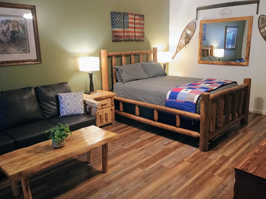 Discover the beauty of nature combined with modern comfort in our 1 Bedroom Deluxe suite. Perfect for a relaxing getaway, it features a plush king-sized bed, a fully equipped kitchen, and a cozy living area ideal for unwinding after a day of adventure. Located in the heart of the Smoky Mountains, you'll have access to stunning views, thrilling water parks, and endless outdoor activities.