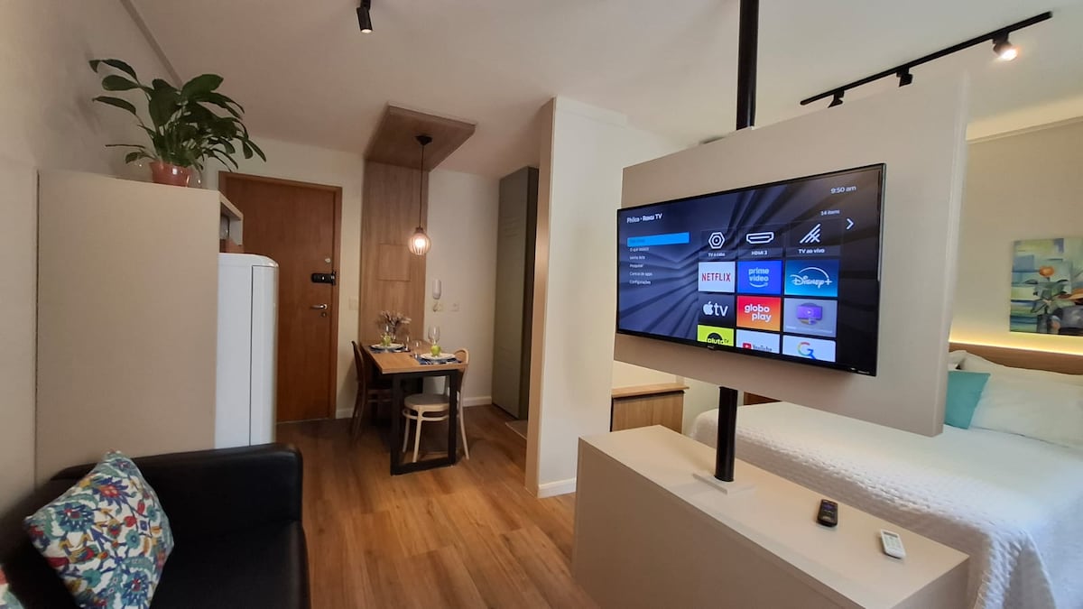 Renovated, complete and well-decorated apartment. Excellent location, in the best neighborhood of Brasília, super safe. Close to the National Stadium. Close to the city's tourist and executive center, with a wide range of shops, bakeries, markets, stores, gyms (Smart Fit and BT), parks, bars and varied restaurants around! Apartment with bedroom, living room, kitchen and bathroom. Super cozy and tidy. It has Wi-Fi and Netflix directly on the smart TV It has a private garage and 24-hour concierge