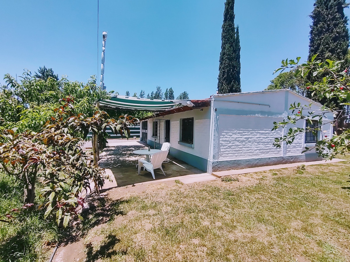 This excellent option to spend unforgettable moments among fruit trees and a unique 100 m2 swimming pool, has a clay oven, a stove with skewers and a covered barbecue. More than 100 fruit trees and the shade of two vineyards with different varieties of grapes. A country house equipped for the comfort of six people. With guaranteed tranquility and a very short distance from the area's shopping areas.