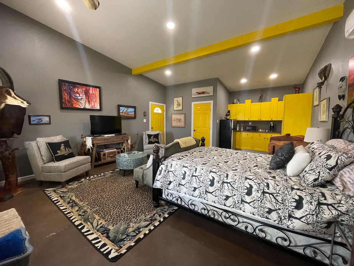 This art studio is located only about three blocks from Lockhart's cute town square complete with Lockhart's famous barbecue and locally owned cafes, shops, and bars. Only 15 miles from the Formula One race track and 30 miles from Austin, you can be close to everything while getting out of the city hustle and bustle. On the other hand, Lockhart has plenty to offer, so you can also just come and enjoy relaxing in this cute slice of Texas.