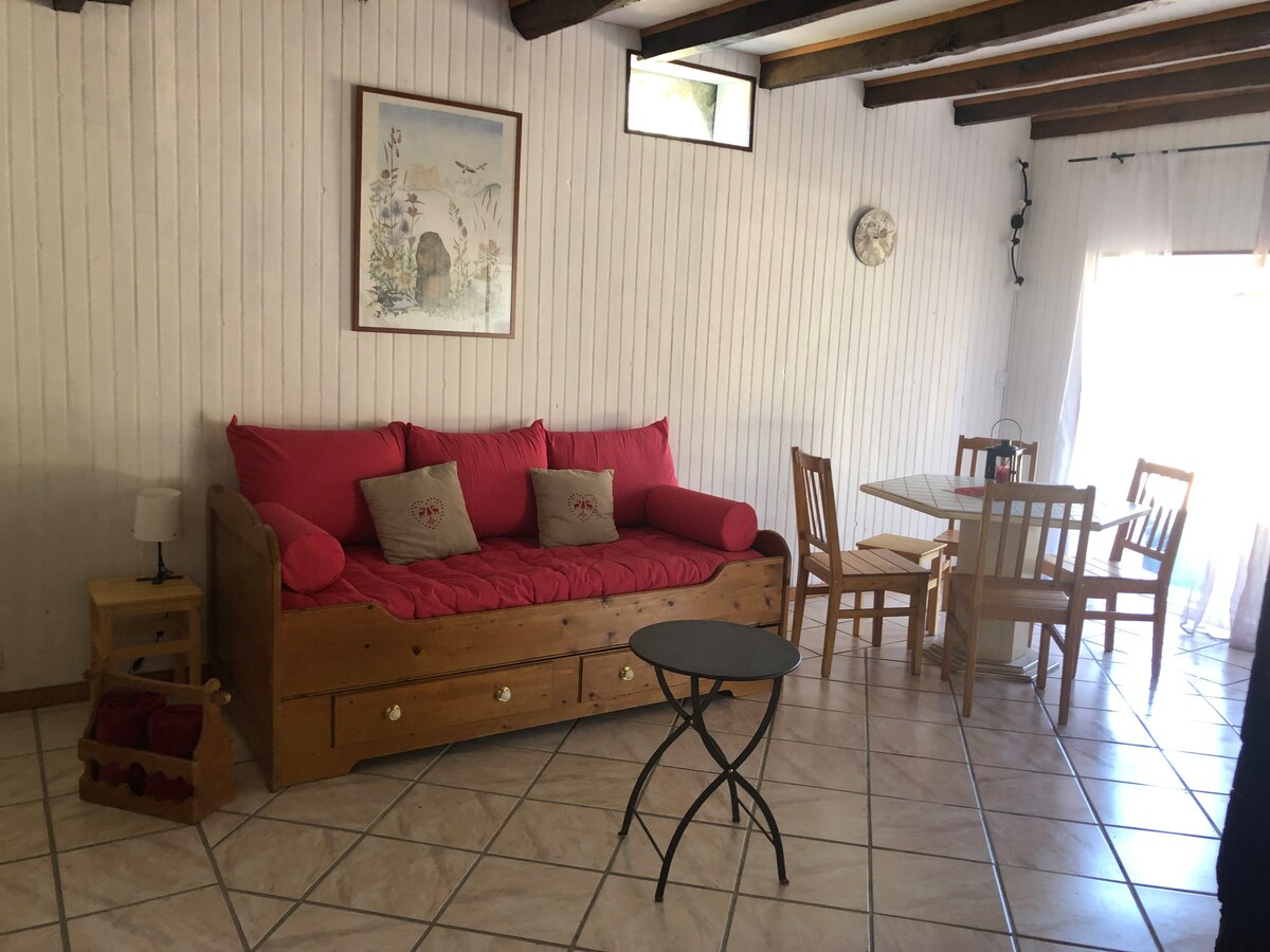 Ce logement paisible offre un séjour détente pour toute la famille. Maison comprenant cuisine équipée, plaque vitrocéramique, four, cafetière espresso, microonde, frigo-congelateur, lave-linge . Séjour climatisé avec canapé convertible 140/190 et télé. Chambre lit double standard 140/190 cm , tables de nuit, grand rangement, bureau. Salle de bain et toilette séparée. Jardin avec terrasse, barbecue, transats . Parking dans la cour. Maison non fumeurs. Nous n'acceptons pas les animaux.