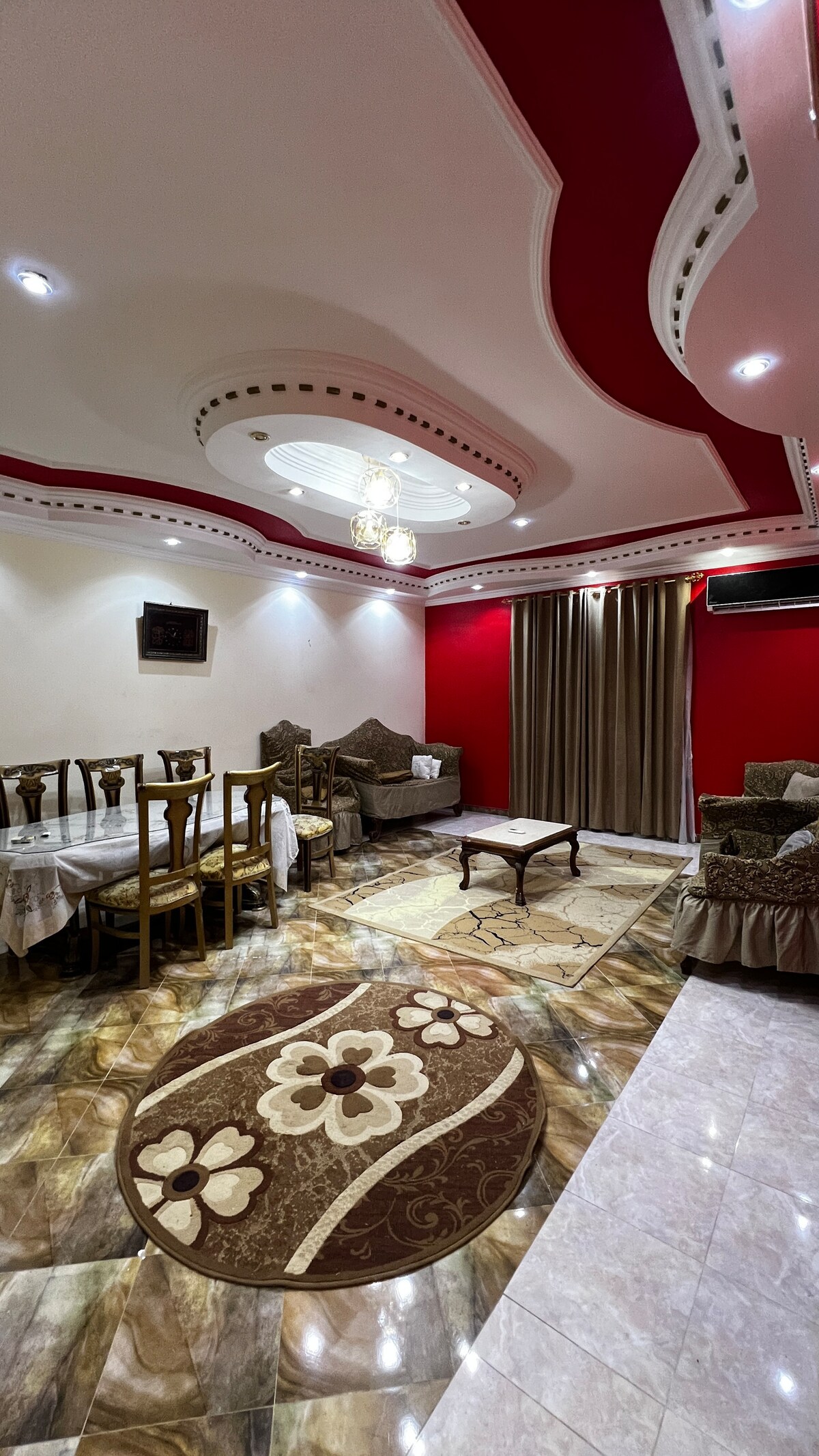 Have fun with the whole family at this stylish place. New cairo 450m 4 bedroom ( one from four master room) 4 bathrooms Central conditioning 6 TV Garden view Kitchen Cleaning service