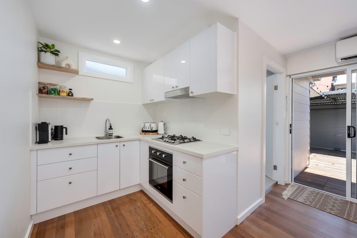 When you are after much more than just a bedroom. I welcome you to my light, bright and cheerful self-contained suite one street away from the beach. A separate entrance contains a large bedroom, separate sitting/lounge room with desk/library, fridge, bathroom, toilet and own private courtyard with free gourmet breakfast a perfect way to start your day! You’ll love my place because of the neighbourhood, the comfy bed &the light. Perfect for couples, solo and business travellers.
