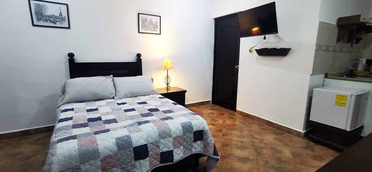Cozy studio on the top floor with all the necessary amenities for a comfortable stay. The space has been recently renovated and features a fully equipped kitchen. The private bathroom has a large shower and soft towels for your comfort. Located in the heart of Merida, on 60th Street, in one of the most popular areas of the city.