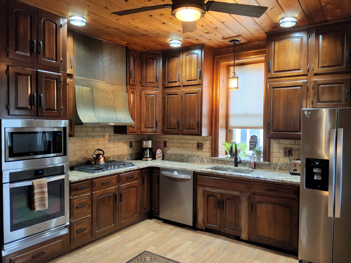 Come bike, hike, fish, kayak, boat and have a fire right on the shore of the lake, yet close to picturesque downtown Chelsea (3 miles) that features bars, shopping, excellent restaurants and we’re a short drive to downtown Ann Arbor/UoM Stadium (18 miles). We cater to families and business people alike with a fully renovated home, kayaks (5), paddle boat (life jackets provided), game room with ping pong, darts, table for poker, stone fire pit, etc. PONTOON RENTAL NOW AVAIL for addit fee.
