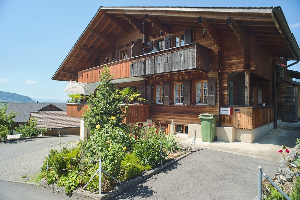 We will welcome you in a small apartment in a 250 year old Swiss chalet. The apartment includes a bedroom with a boxspring bed, a sweet kitchen and a bathroom with a tub. Situated in Sigriswil, a lovely village looking down on the lake of Thun. A 20 minute drive from Interlaken or Thun. The house is in a very quiet neighbourhood, at night you will hear crickets, water from a spring and maybe some cowbells. Parking is no problem as we have a big parking lot.The tourist taxes are included.