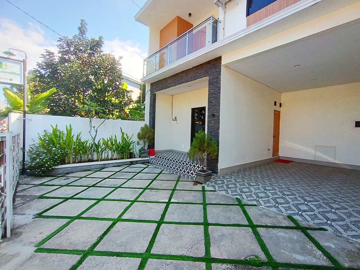 Guesthouse di tengah Magelang. Bangunan baru, fasilitas lengkap! Bedroom: 1 king bed with AC 2 single bed with AC 1 queen bed with AC Free 1 extra bed Bathroom: 2 bathrooms Water heater Shower Living Room: Smart TV 50 Sofa Kitchen: Kitchen set Complete kitchen equipment Dining table Refrigerator Microwave Magic com Smarthome kettle Mineral water Tea, coffee Extra service: Washing machine Wifi Netflix account Youtube premium account Parking area