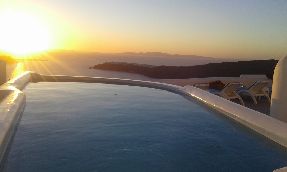 This luxury villa has the best location and feature specious terraces with famous view of Caldera and Aegean sea .Roof top terrace have heated Jacuzzi and comfortable sun-lounges.There is outdoor furniture next to Jacuzzi where you can enjoy breakfast and dinner with unforgettable view . Daily breakfast and cleaning make your stay comfortable .Each bedroom have private bathroom . In a walking distance you will find restaurants,bars, museums and supermarkets.Food delivery available.Free wi-fi