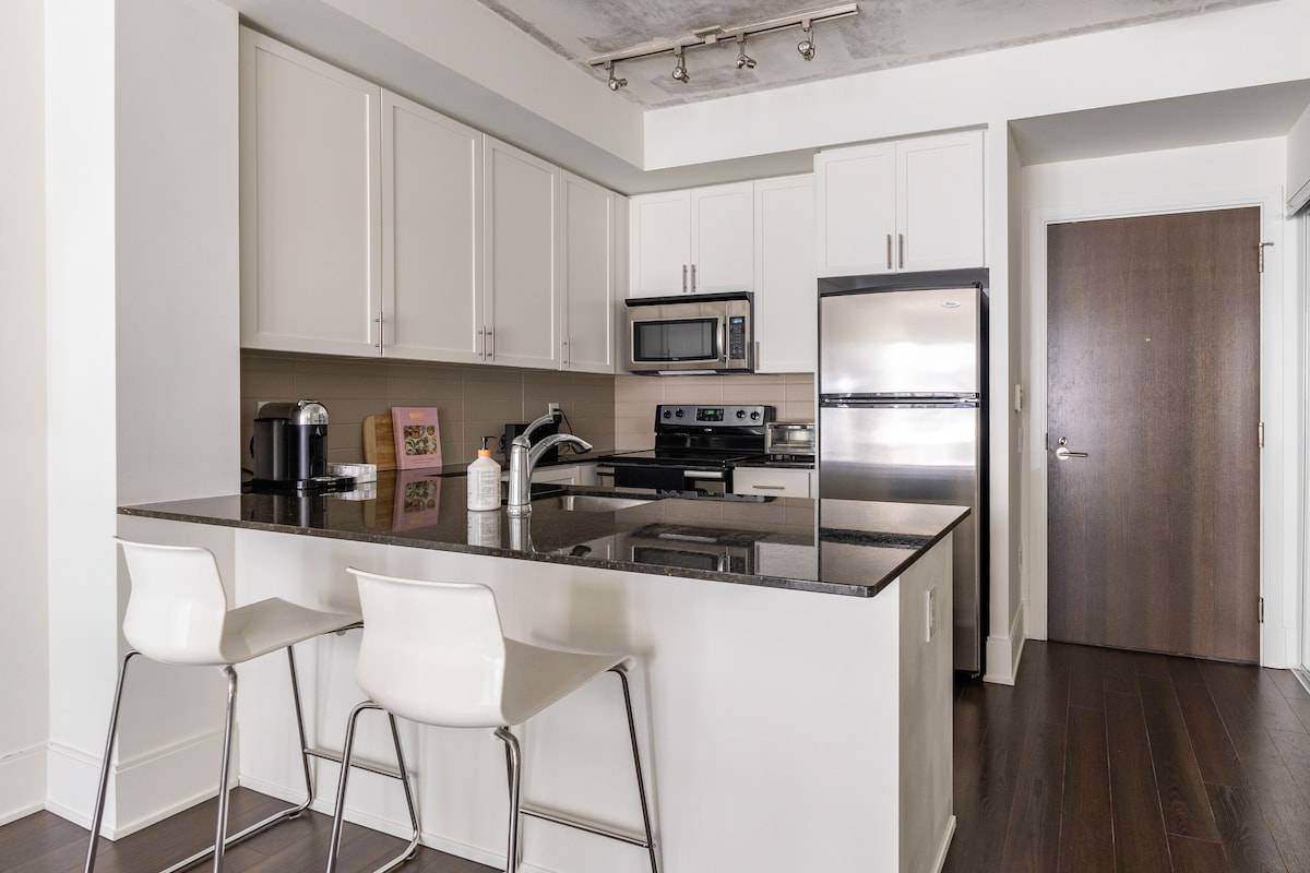 Enjoy a trendy and cozy experience at this centrally located condo. This 1 bedroom, 1 bathroom unit is located in the heart of the city within walking distance to many of Toronto's most popular restaurants, bars and tourist destinations. Steps away from King street, The Well and walking distance from the CN Tower, Rogers Centre, Ripley' s Aquarium and much more. The unit is equipped with high speed Wi-Fi with unlimited internet. You can also enjoy the gym and studio room.