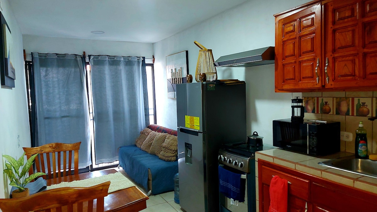 A fully equipped apartment with everything for a short or long stay, with a queen size bed for a couple, and a sofa bed for a second or third additional person. You'll be in the heart of Managua, across from the Metrocentro Mall, with a variety of food shops, a supermarket, and movie theaters. It is a spacious, private space, with access to the main street, central location to Transnica bus station, public buses, Metrocentro Shopping Center, National Baseball Stadium and Universities.