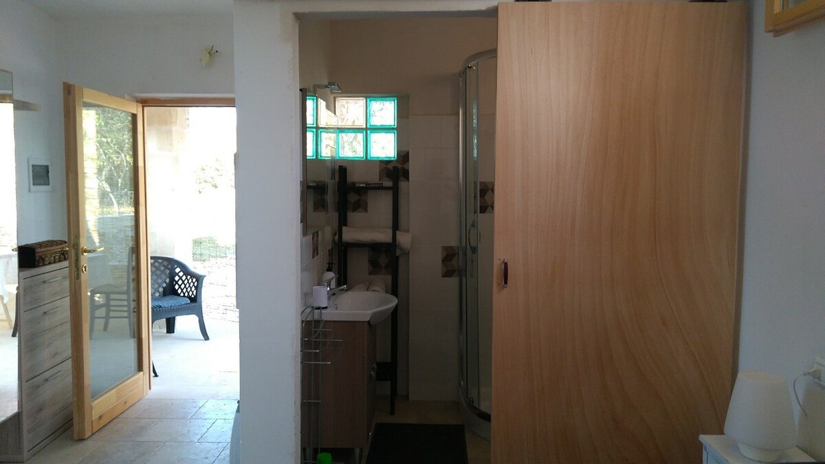 Vivi questo spazio incredibile, ricco di storia, situato in un contesto pittoresco. Al centro di un borgo di mare lontano dal turismo di massa. Pietra bianca naturale tutta intorno alla stanza e per terra la tipica “chianca” (temine medioevale che significa lastra di pietra) antica e originale. Ho cercato di lasciare il tutto più originale e rustico possibile per dare la sensazione agli ospiti di rivivere i tempi antichi in cui in questa camera ci viveva un’intera famiglia di 10 persone.
