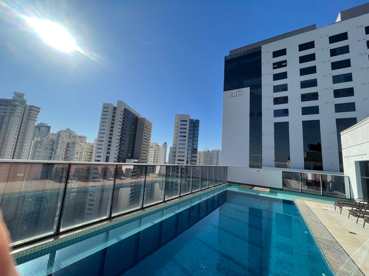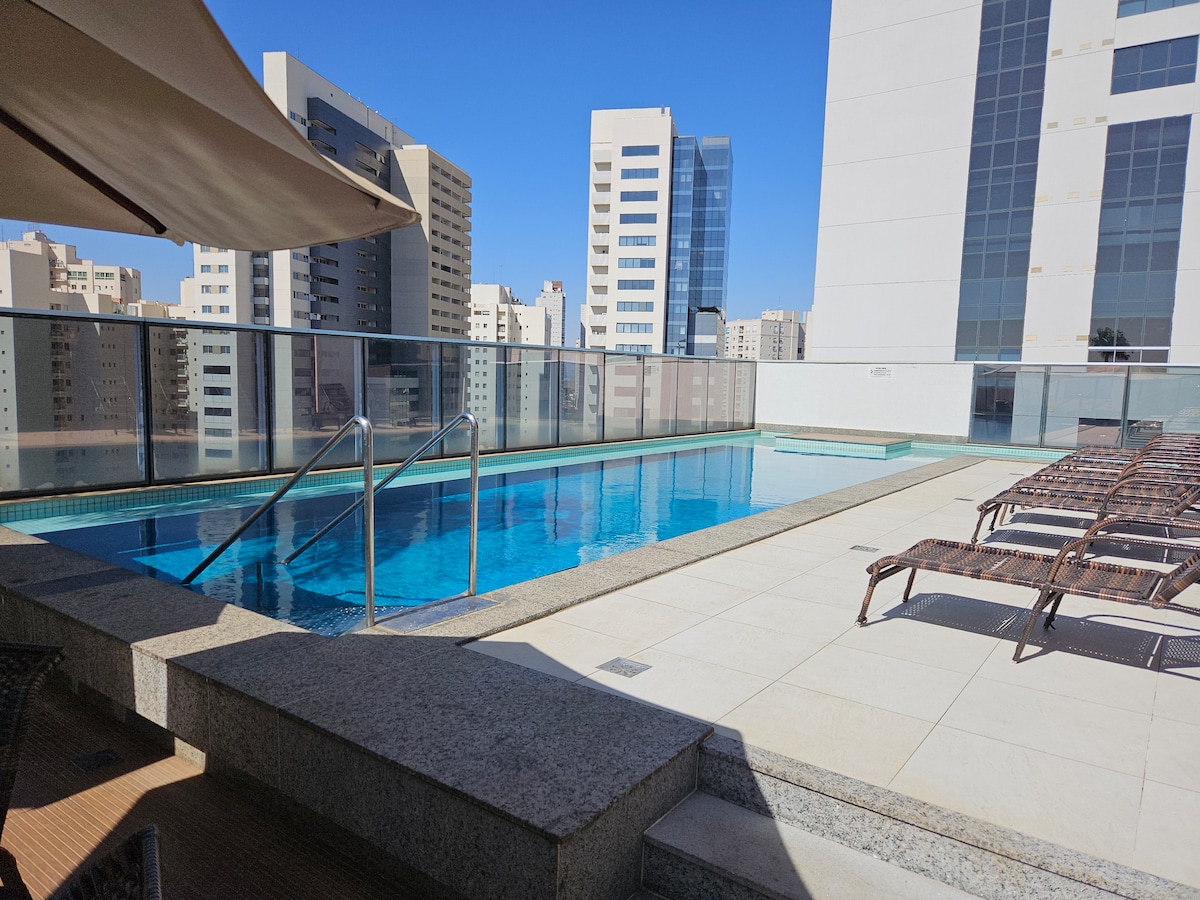 Complete apartment, on the 25th floor, east view, fully furnished and with a full kitchen. With an infinity pool on the rooftop, with a spectacular view. Located in the prime region of Goiânia, close to Flamboyant Shopping Mall, the largest in the city. Close to the beautiful Flamboyant Park; A few minutes from the Airport, Race Track and Serra Dourada Stadium. Very close to a bar, pharmacy, gas station, restaurants, convenience stores, pizzerias, school and others. A very safe place to stay.