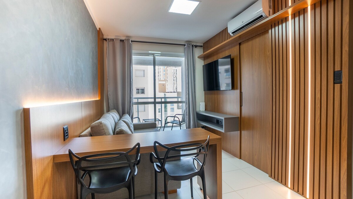 We value the details, all our apartments are carefully inspected before delivery to guests. Unique and stylish, with all planned carpentry, located in one of the best regions of the city, Jardim Goiás. Close to Flamboyant Mall, Serra Dourada Stadium, Oscar Niemeyer Cultural Center, as well as bakeries, bars, restaurants, pharmacies, shops and parks. Enjoy the best the city has to offer in an elegant and comfortable environment.