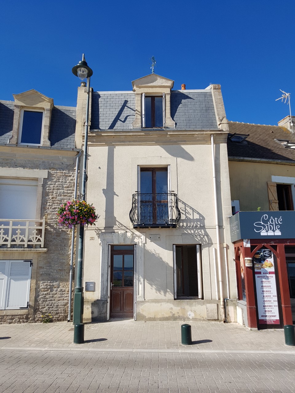 House located 300 m from Arromanches, a must-see landing site. It includes a kitchen open to the dining area, a living room with wood-burning stove, 1 bedroom and 1 toilet on the ground floor. Upstairs, 2 bedrooms and a bathroom with toilet. You will have a garage, a terrace with garden furniture and a barbecuecue. Guests will enjoy the quiet and fully enclosed garden. The house is ideally located for visiting the landing sites, enjoying the beach 300 m away and accessing shops.