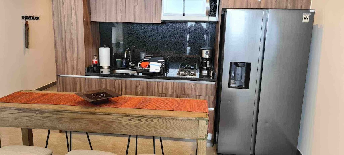 Full apartment, in Residencial High Park Sur, two bedrooms, two full bathrooms, living and dining room, smart lights and blinds, the residential complex has an indoor pool, gym, jacuzzi, sauna, games room, adult lounge with billiards, jogging track, paddle court * cinema * barbecues * very close to the Aztec stadium, hospital area and major shopping centers. Restaurants, shops, a shopping mall, and a supermarket across the street. * Subject to booking