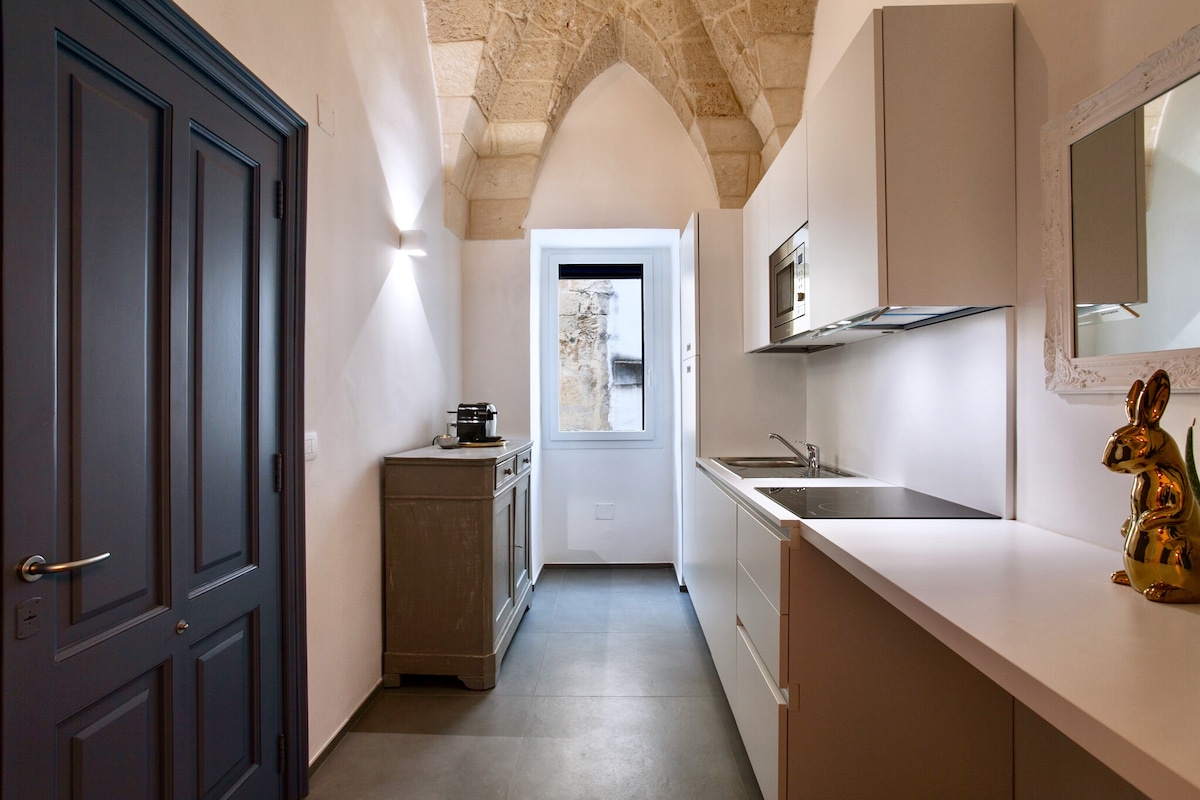 The residence is on the ground floor of a historic 17th-century building in the heart of Lecce, a short walk from the beautiful church of San Matteo and 5 minutes from Piazza S. Oronzo. The renovation has enhanced the building and all the history it contains and at the same time has made the home functional and equipped with every comfort. It has an extra service: a two-seater sauna with chaise longue and herbal tea corner (additional cost of €40/day). Art, mini SPA, antique and modern for an unforgettable trip!