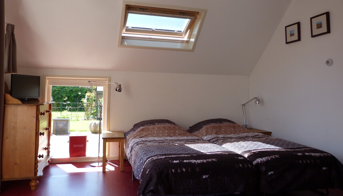 Located between the Gees Forestry and the Mantingerveld, with unobstructed views over farmland. Our farm was built completely new in 2015, we live in the back house and the front house is furnished as a vacation home. 5 private parking spaces, a spacious garden with terrace where you can sit comfortably. 1 bedroom on the ground floor with private bathroom, the other 4 bedrooms on the first floor with shared bathroom.