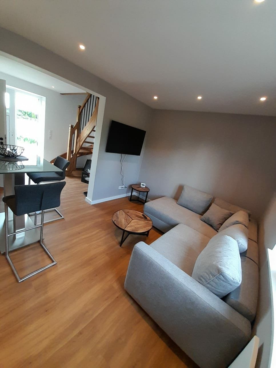 Apartment "Am Deich" - cozy, modern & just a few steps to the Wadden Sea. The apartment offers an open living, dining and sleeping area for couples, solo travelers or small families on 42 m². Fully equipped kitchen, cozy sitting area with large TV, bathroom in natural stone look with shower. Small green garden area to linger. Just a few steps to the dike, Wadden Sea and coastal bike paths – perfect for relaxation, cycling and enjoying nature.