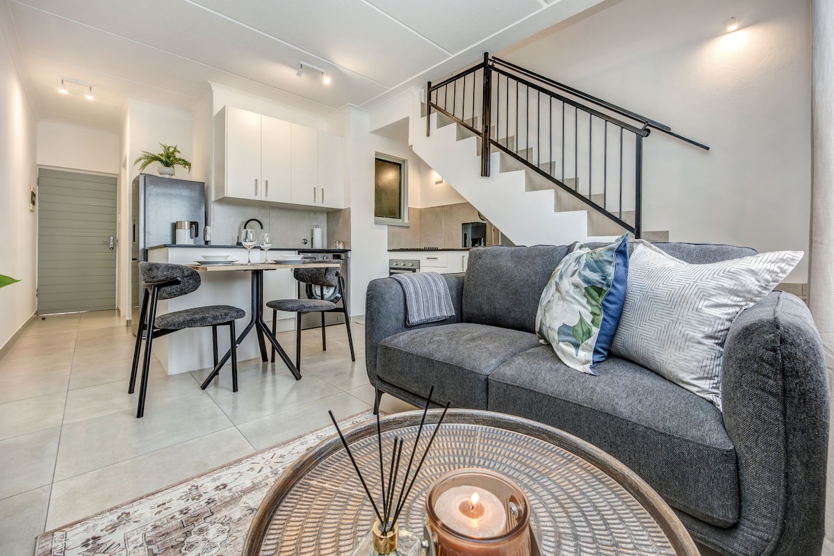 Safe, Stylish & Spacious Near Sandton. Unwind in this beautifully styled, extra-large studio apartment set in the secure Thornhill Estate conveniently close to Sandton and OR Tambo Airport. With a generous open-plan layout with a full kitchen, luxury finishes a spa-like bathroom with dual basins, a walk-in shower and an oversized bathtub. Dedicated workspace and fast Wi-Fi. Access to estate amenities including a shared pool. Perfect for work trips, solo travellers or couples.