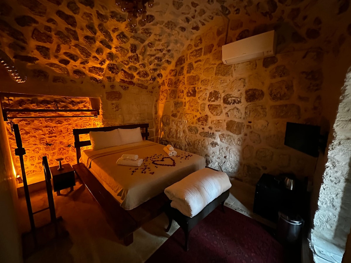 The Asfora Type Room reflects Mehmet Bey Mansion's centuries-old stonework and the historical Midyat texture. Our meticulously restored room has air conditioning, Wi-Fi and a private bathroom. You can start your day with a rich mixed breakfast served in our mansion with a view of Mesopotamia. A peaceful accommodation experience that combines the traces of the past with modern comfort awaits you.