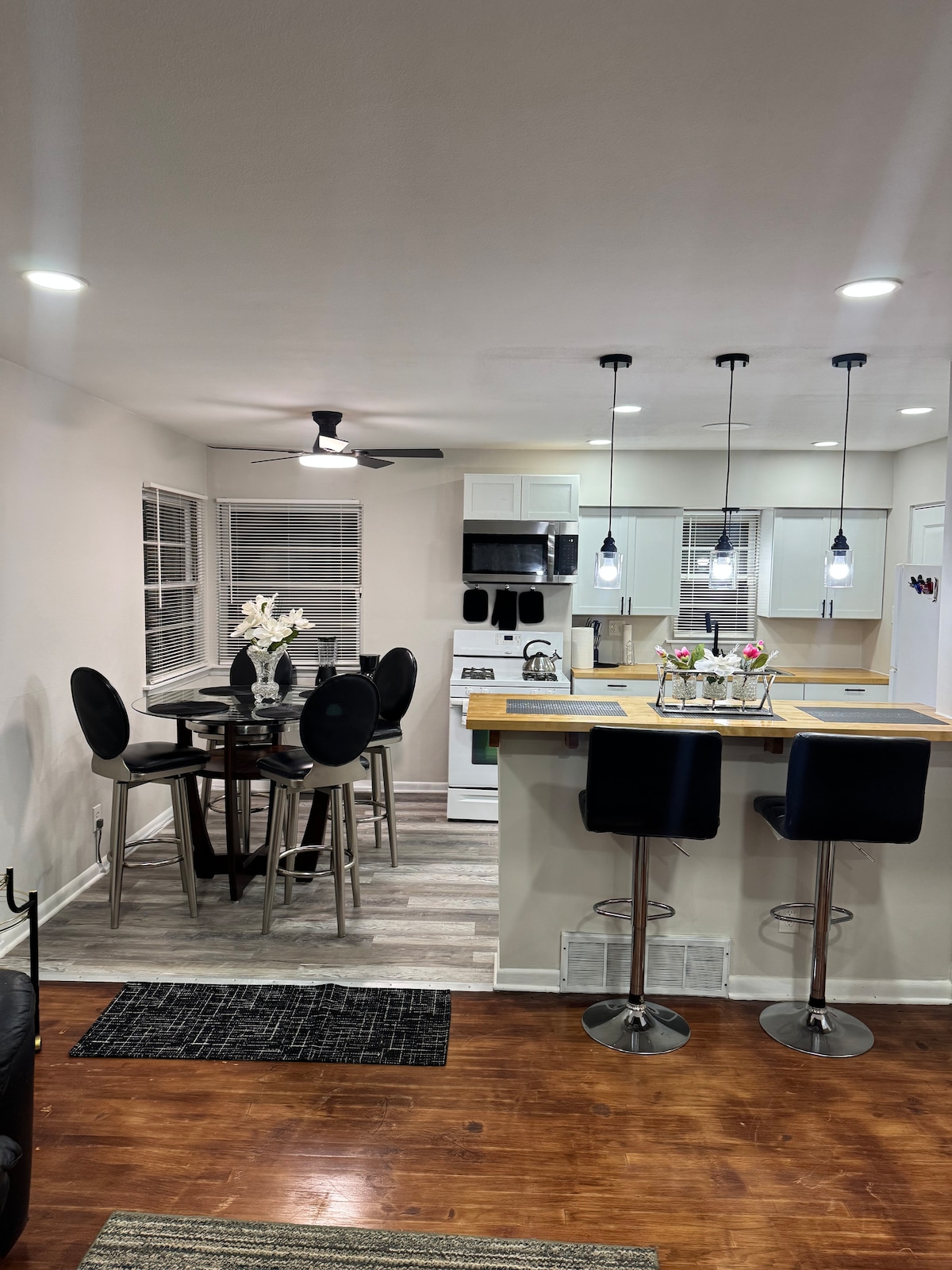 Experience the city in style at Retro Modern Bungalow, the perfect pad for up to 4 friends. Featuring two spacious bedrooms—each with a king bed and luxury linens—a propane fire pit and a fully fenced, pup-friendly backyard. Enjoy central HVAC, speedy WiFi, and a dedicated workspace. A pack-n-play crib is available at no cost. Central location just south of Oak Park, 15 mins from Midway airport, and 20 mins from downtown. Park for free in our garage or catch the train a few blocks away.