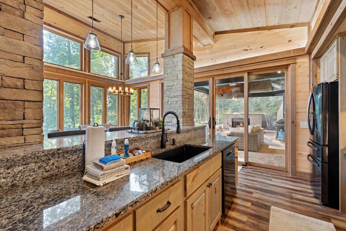 Step into the luxurious 2BR 2BA oasis - a scenic and tranquil property in the Blue Ridge Mountains. A relaxing escape with breathtaking mountain and forest views, nestled 20 minutes from the towns of Blue Ridge, McCaysville, and Murphy, with many attractions and natural beauty. ✔ 2 King Bedrooms ✔ Open Design Living ✔ Fully Equipped Kitchen ✔ Hot Tub ✔ Wood burning indoor fireplace ✔ Patio (Gas fireplace, TV, Heater, Grill, Wet bar) ✔ Sonos Audio system ✔ High Speed Wi-Fi ✔ Parking