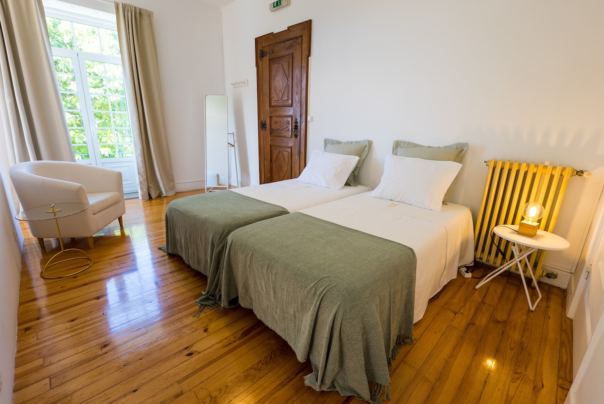 Típica casa burguesa dos finais do século XIX, princípios do século XX. // Ar condicionado // WC privado (suíte) // Acesso a jardim espaçoso com ótima exposição solar // Estacionamento disponível (garagem 15€/dia) // Guarde as malas antes e depois da sua estadia // Check-in gratuito até às 20h (cobrada uma taxa após essa hora ou providenciaremos o necessário para um check in autónomo) // Apoio ao hóspede sempre disponível // Berço mediante pedido 35€/estadia