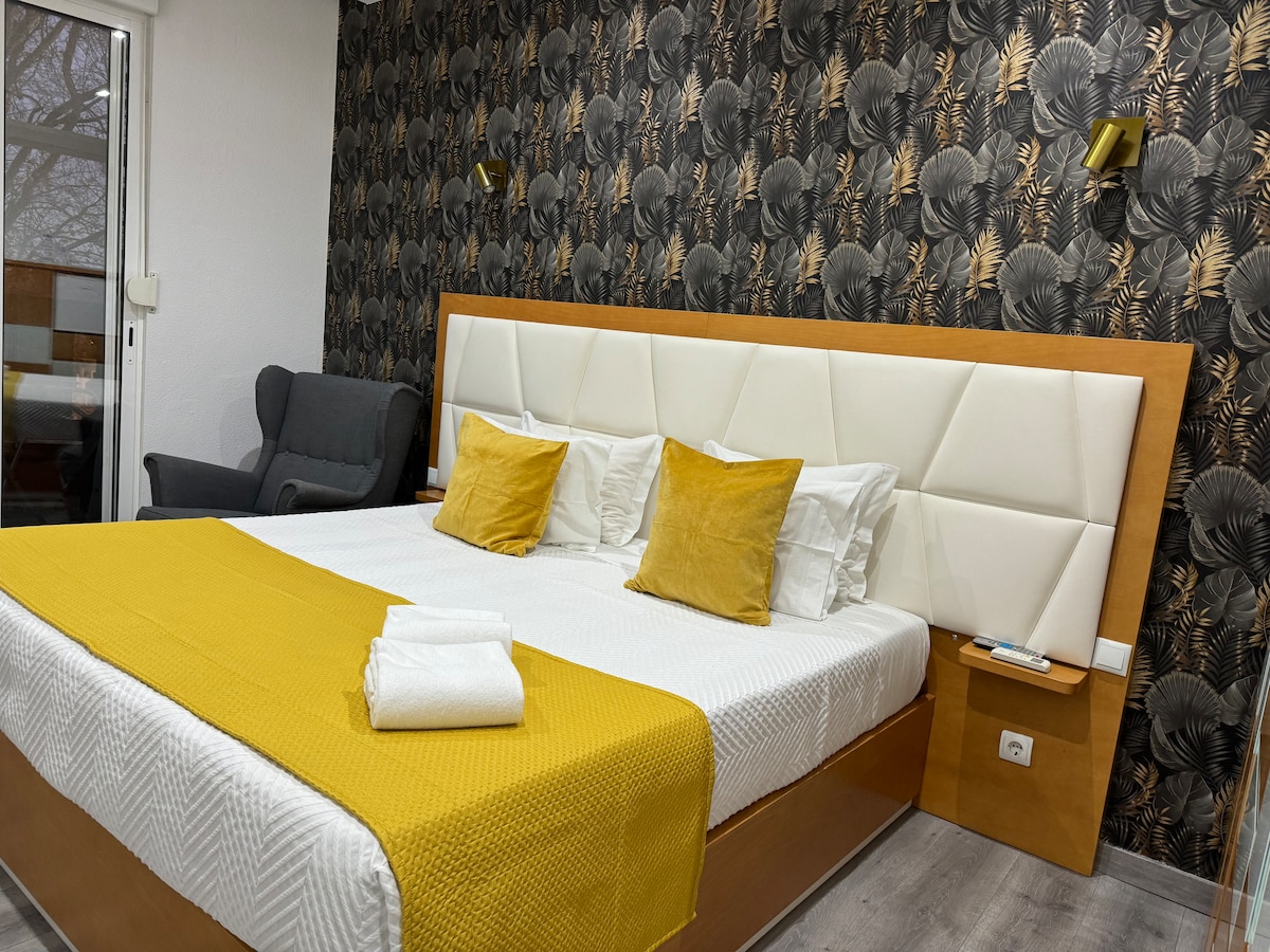 Our Camino Comfort Room is a charming Double Suite, perfect for those seeking comfort and a relaxing view. It features a Queen-size bed, as well as a coffee machine, kettle, flat-screen TV, and free Wi-Fi access. The room also includes a private bathroom. With a small balcony facing the river, this space invites moments of tranquility and contemplation. The perfect retreat for an unforgettable stay and to enjoy unique moments in the beautiful city of Vila do Conde.